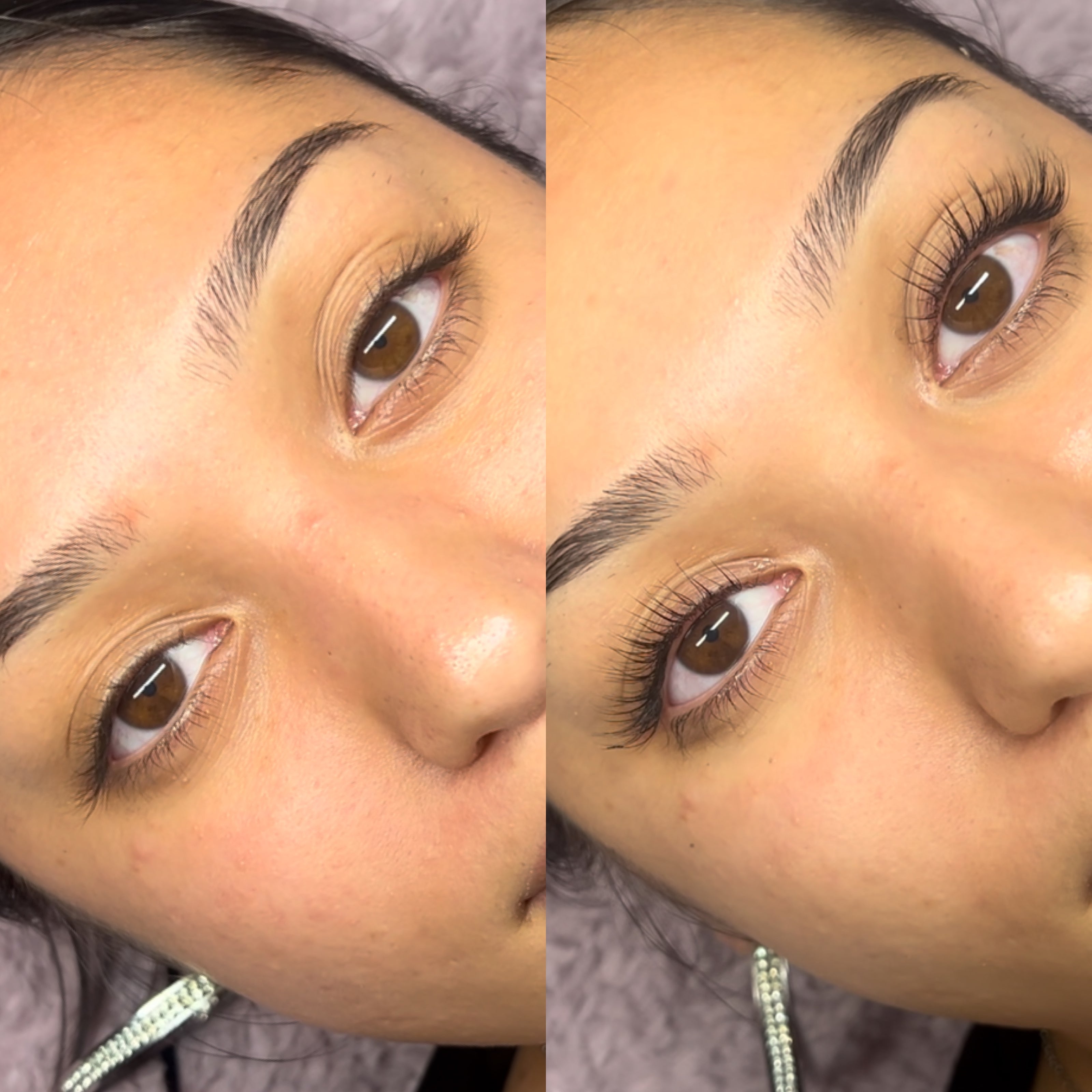 We start with clean, makeup-free lashes and gently prep them for the lifting process. No extensions or mascara needed. Your natural lashes are lifted and curled to perfection, giving a wide-eyed, effortless look that lasts 6–8 weeks. Wake up ready—no lash curler required!